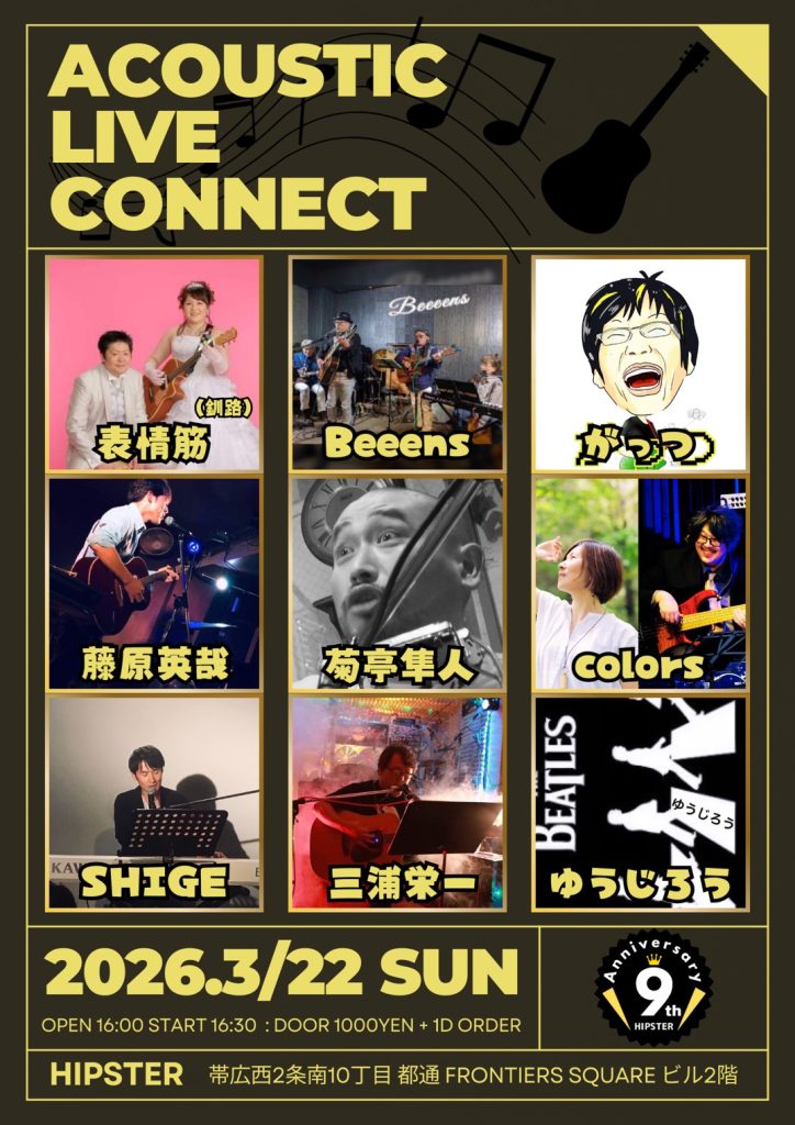 ※最近は関くんにお呼ばれして出る感じになっている、HIPSTER。お店の周年が2月なのですが、今年も大人気のようで2月・3月と周年期間なんだそうです。なんと9周年!おめでとうございます!!この日はアコースティックな日らしいです。ぜひ、一緒にお祝いしながら音楽を楽しみませんか?